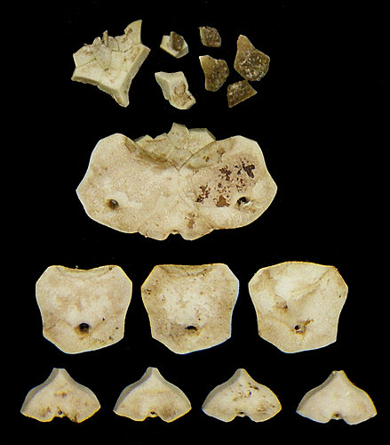 另有單一個舌頭狀的物件,膝蓋骨(rotula) (r),在其輻射狀的位置上,直接架在兩個臨近的錐體的骨骺 (epiphyses)上。 膝蓋骨(rotula)的功能為將臨近的半錐體(hemipyramid)捆綁在一起的支撐臂。