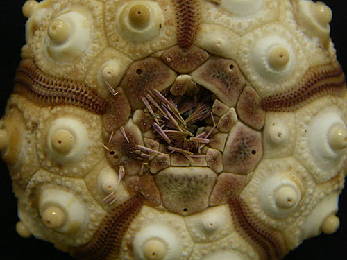 近拍的間步帶區 (interambulacral area)與一級結節(primary tubercle)↓