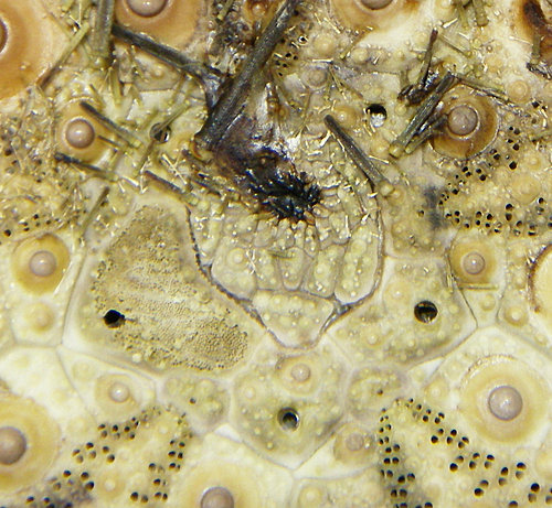 將棘刺拆掉半洗後的反口面 (aboral) 步帶區 (ambulacral area)近拍