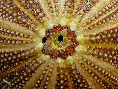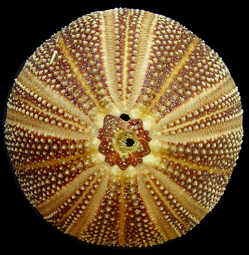 Echinus esculentus 食用正海膽, aboral view, apical disc plating.