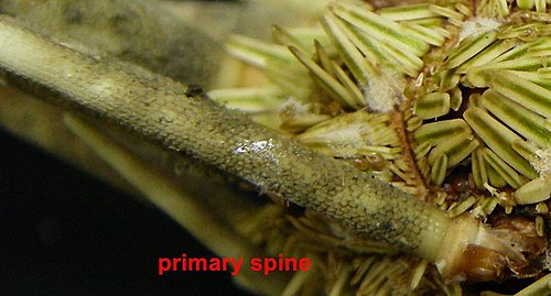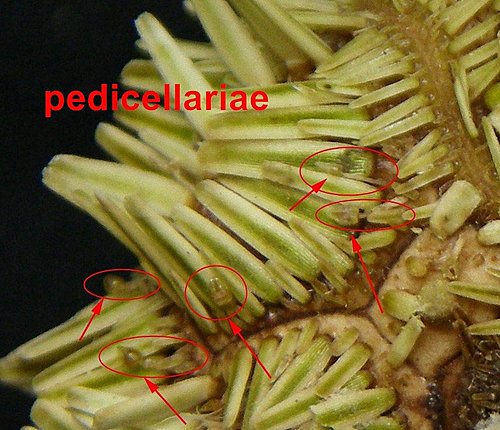 Prionocidaris glandulosa, pedicellariae, close-up.