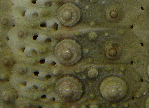 Salmacis bicolor , lateral view. interambulacrum . close-up.
