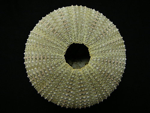 Test體殼:雙色角孔海膽的殼高從扁平低矮的半球形,到高錐狀都有可能,故其體殼變異極大,殼徑最大可達10公分。