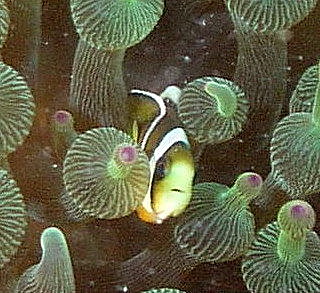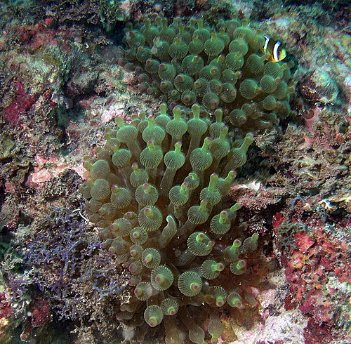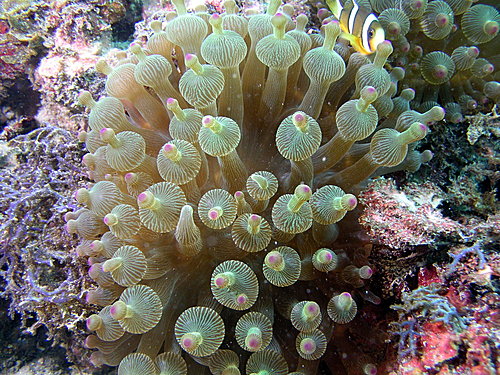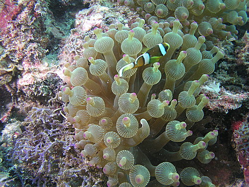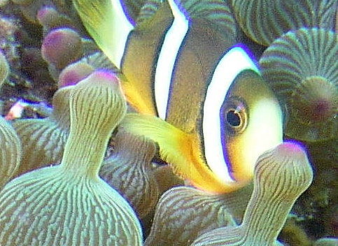 與Entacmaea quadricolor 四色篷錐海葵共生。 Symbiosis with Entacmaea quadricolor。
