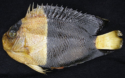 Description:Bicolor angelfish. Fish taxidermy. Preserved using formalin, taken with tangle net in Caubian Island, Cebu, Philippines.