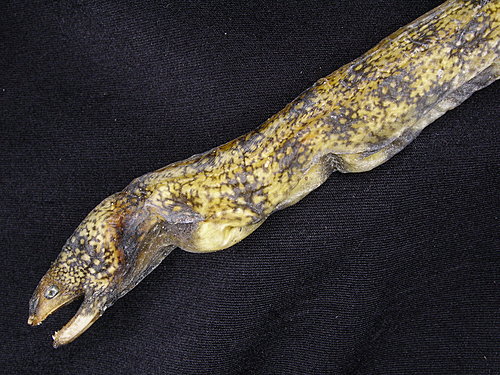 Description:Lipspot moray. Fish taxidermy. Preserved using formalin, taken with tangle net in Caubian Island, Cebu, Philippines.