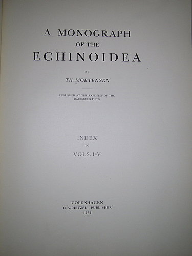 Book Description: 研究與收集海膽的人必備的參考書目,也是最重要的之一,為Mortensen的「A Monograph of the Echinoidea」,該套有關海膽的巨著文獻多達16巨冊,加上Index 1 冊,共計17冊,從1928年開始至1951年陸續發表與出版,是極珍貴且重要的海膽分類參考文獻。為一發行量不多並已絕版的巨冊。據說全大陸只有兩套,而且有些已遺失,故不齊全,而台灣則闕如。