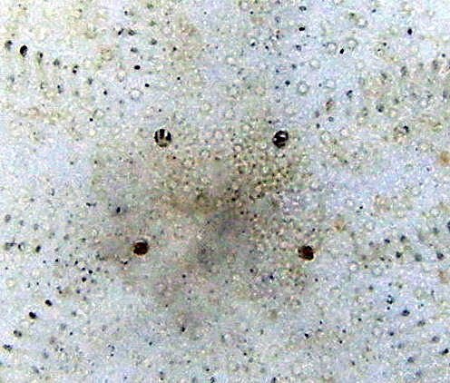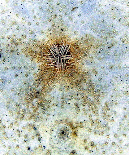 Peronella pellucida, 透明餅海膽, Oral view, Peristome (口圍) & Periproct (肛圍).