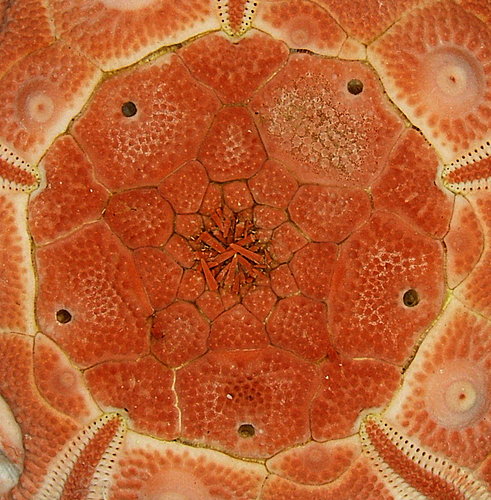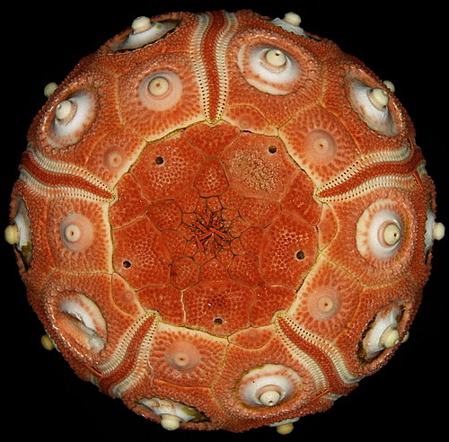 Stereocidaris granularis rubra, Aboral view(反口面).