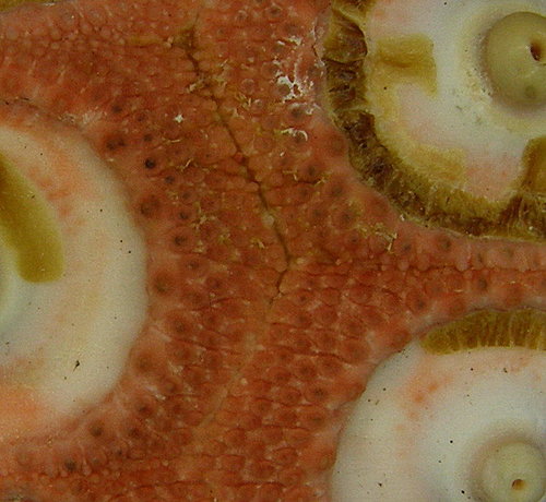 Stereocidaris granularis rubra, Lateral aboral view, interambulacral area(間步帶區).