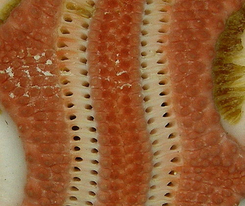 Stereocidaris granularis rubra, Lateral view, ambulacral area(步帶區).