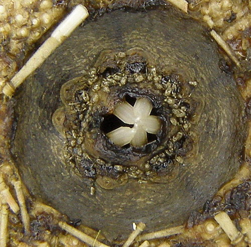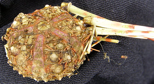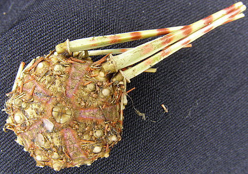 一級棘刺呈些微彎曲且末端有不規則暗紅色與綠色環節,而近端為綠色。