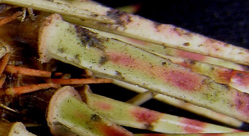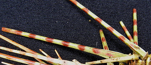 一級棘刺呈些微彎曲,近端為綠色,末端有不規則暗紅色與綠色環節。