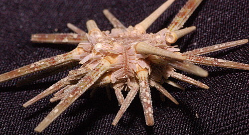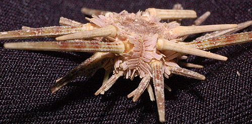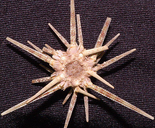 Prionocidaris pistillaris, Lateral aboral view(側反口面).