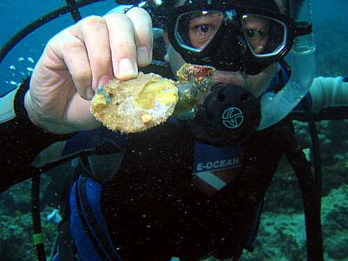 這個被稱呼為「水手之眼球」Sailor's Eyeball是一種神奇的自然界禮物,如一顆夜明珠,它是世界上最大的單細胞藻類植物,尺寸約一棵乒乓球大小,其外殼有如塑膠般堅韌不易破,如將表面的附著物用手擦拭乾淨,你將看到它的透明度很高,內容物填滿綠色液體,如果你將它拿起來高舉朝陽光處看,陽光會穿越其間,此外你會看到如星星一般閃耀的寶藍色折射光,非常美麗異常。