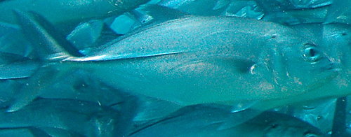 Common name: Six banded trevally; Turrum; Trevally; Dusky jack; Bigeye trevally; Bigeye kingfish; Giant trevally; Horse mackerel; Great trevally; Horse-eye jack
