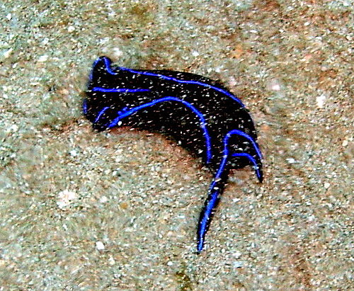 形態特徵: 此種主要廣泛分佈在印度-太平洋海域,全身黑色並且帶有藍色的線條,主要以扁蟲動物為食,因此常被拿來飼養在礁岩水族箱中以捕食寄生在珊瑚上的扁蟲,藉此來控制扁蟲族群。