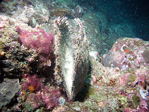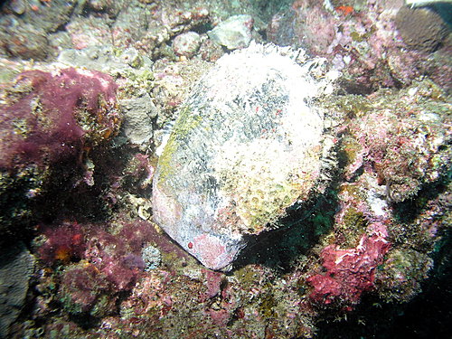 形態特徵: 大型,四方形近圓形,黑褐色,殼表粗肋為鱗片狀組成,部分會有白色放射色帶。兩殼扁平。殼內邊緣深色,中間為銀白色,珍珠質發達。棲於珊瑚礁海域、潮間帶低潮線下至水深20公尺、以足絲附著於岩石或珊瑚礁。