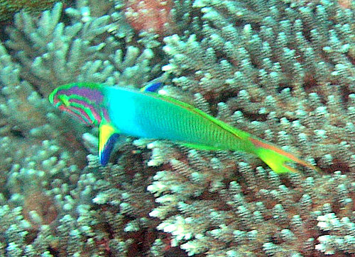 Common name: Parrotfish; Yellow wrasse; Yellow-brown wrasse; Sunset wrasse; Whistling daughter; Surge wrasse; Green moon wrasse