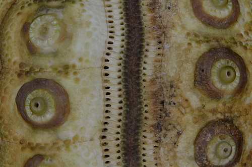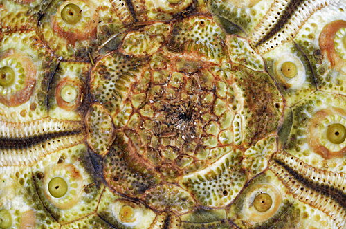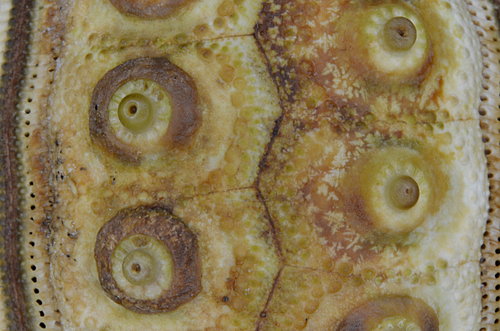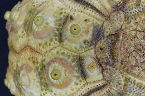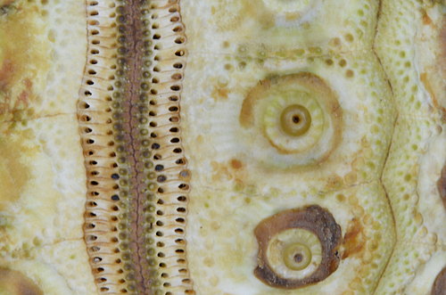 Acanthocidaris maculicollis, Lateral view, interambulacral area(間步帶區).