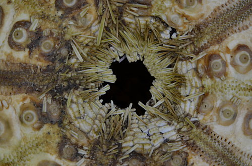 Acanthocidaris maculicollis, Aboral view(反口面).
