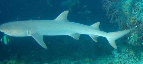 Common name: Reef whitetip; Reef whitetip shark; Whitetip reef shark; Whitetip shark; White-tip shark; White tip reef shark; White-tip reef shark; Blunt-head shark; Blunthead shark; Light-tip shark
