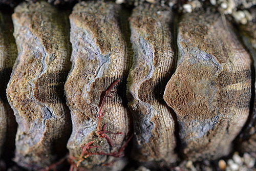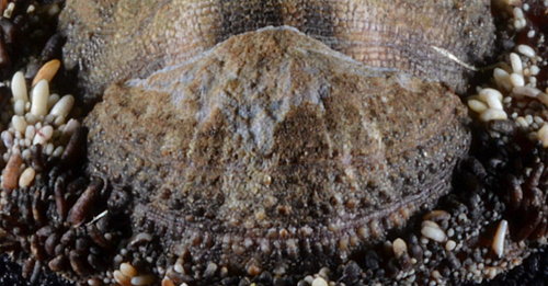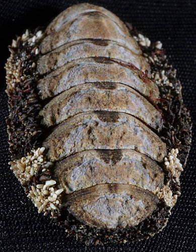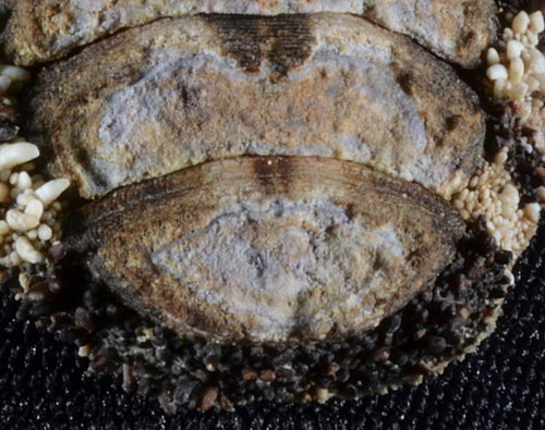 大駝石鱉的殼表不規則有顆粒覆蓋。