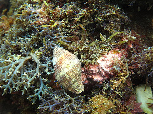 形態特徵: 殼呈橄欖狀,殼色多為咖啡色,也有褐色及橘色個體。在體螺層的中央偏上方有一條由不等大小的白色斑點形成的環帶。殼口為白色,在殼口外緣具有一個線條缺刻的環帶。棲息在潮間帶到淺海的岩礁上。