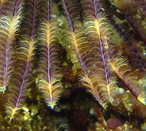 形態特徵: 大型觸手羽冠約8公分,呈馬蹄形,上面常有紅色到咖啡色,或有灰白及藍子色斑紋。蟲管革質,灰褐色。濾食水中有機物及小生物。鰓冠對水壓、光線非常敏銳,稍一靠近,立刻縮入管中,只露出蟲管。主要生活在礁岩海域1~5公尺深,特別是水中有機顆粒豐富之處,現被接受為Sabellastarte spectabilis。