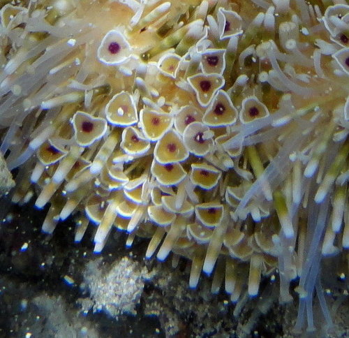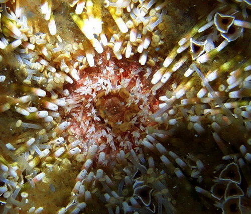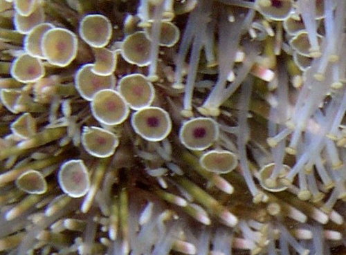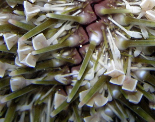 這種海膽的刺又短又小,沒有防衛能力,主要靠這些有毒像「喇叭花」的叉棘來防衛。