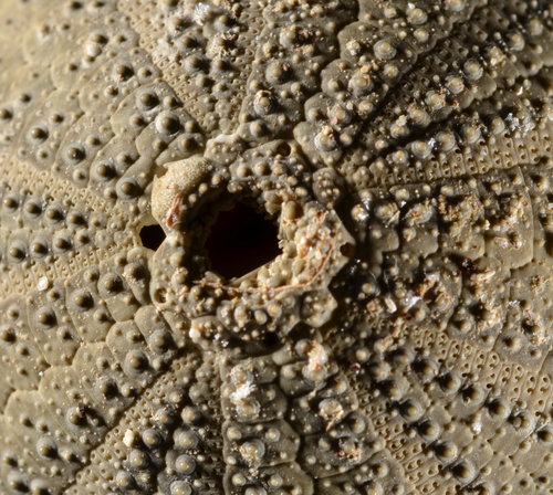 Amblypneustes pachistus, Lateral view, interambulacral area(間步帶區).
