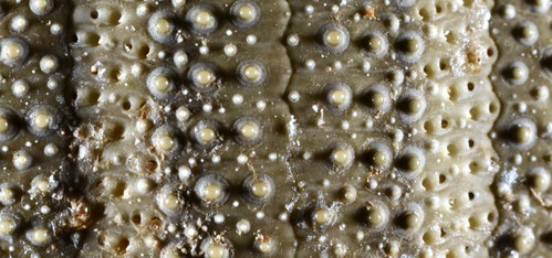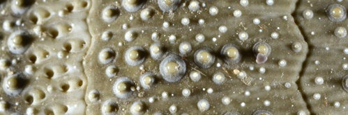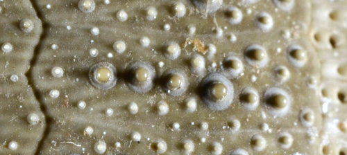 Amblypneustes pachistus, Lateral view, plating of interambulacral area(間步帶區), Close up.