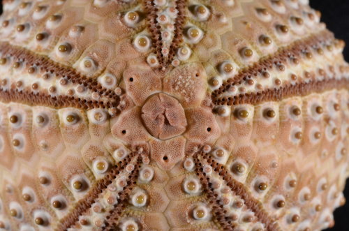 Arbacia punctulata, Oral view(口面), interambulacral area(間步帶區), Close up.