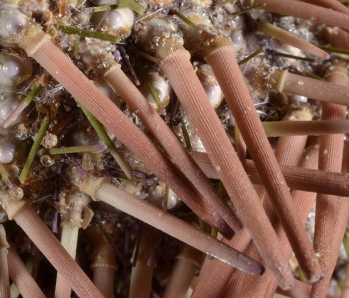 Lytechinus variegatus, Lateral view, interambulacral area(間步帶區), Close up.