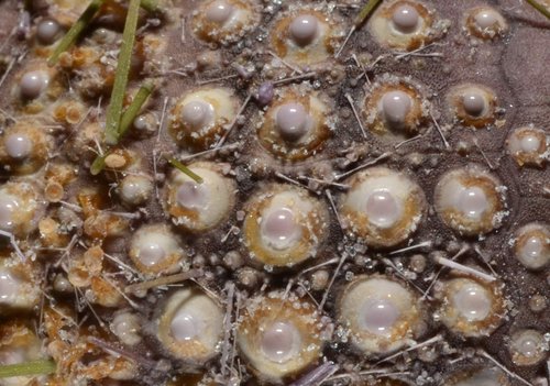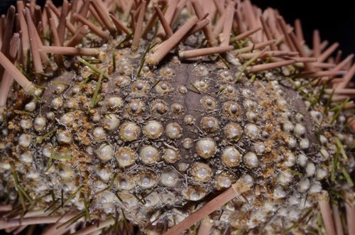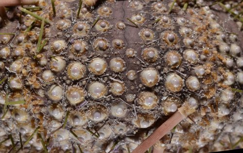 Lytechinus variegatus, Lateral view, ambulacral area(步帶區), Close up.