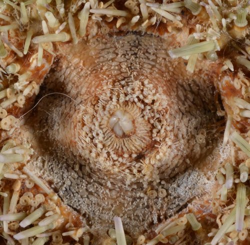 Psammechinus miliaris, Apical system (頂系), Close up.