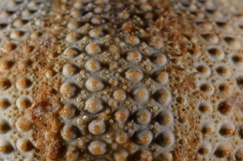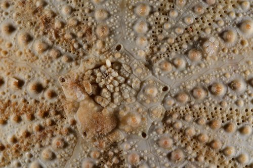 Pseudoboletia maculata, Aboral view(反口面), interambulacral area(間步帶區).