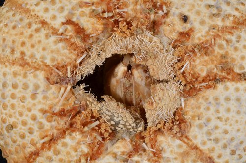Pseudoboletia maculata, Lateral view, interambulacral area(間步帶區).