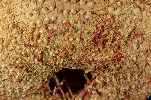 Salmacis rubricincta, Lateral view, interambulacral area(間步帶區), Close up.