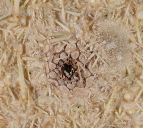 Selenechinus armatus, Lateral aboral view(側反口面), Close up.