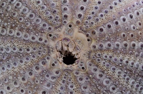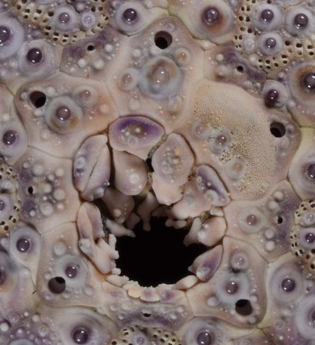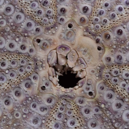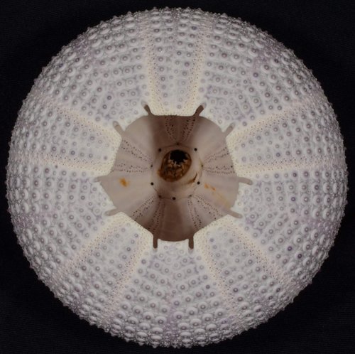 Sphaerechinus granularis, Lateral view, interambulacral area(間步帶區).