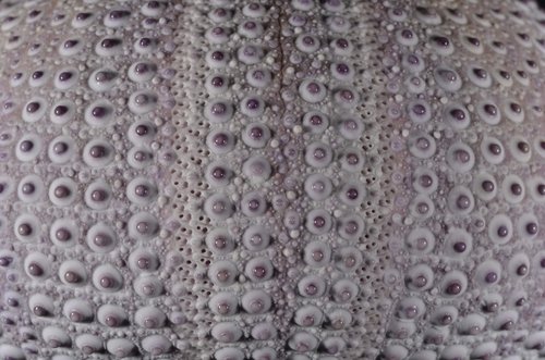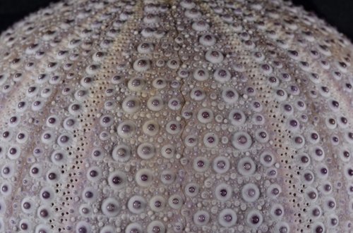 Sphaerechinus granularis, Lateral view, interambulacral area(間步帶區), Close up.