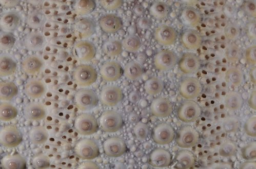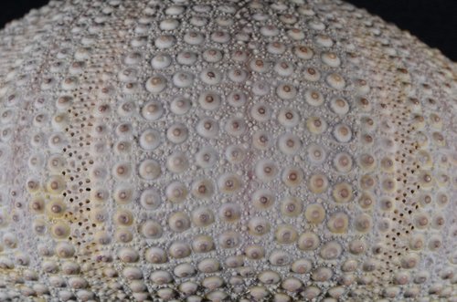 Sphaerechinus granularis, Lateral view, interambulacral area(間步帶區), Close up.