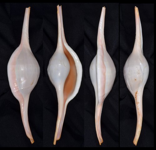 依據以上的論點,於是我將這一、兩年從澎湖收集到的17只Volva sp. 標本拿出來重新審視後,發現其實並不是如書本所述的那麼簡易即可區分,因為總有介於其間的標本出現,舉例來說,「中央螺體部背面具有橫紋者」為區別的重要Key,但可以發現中央螺體部背面的橫紋兩邊側較顯著而中央光滑,因此同時兼具有橫紋與光滑的狀況;此外,還有些中央螺體部背面看似光滑但具有較稀疏與微凸的橫紋,從側面觀之形成多角弧線;兩端水管溝的變異也不小。因此只好盡力而為,野人獻曝了。