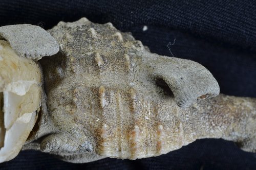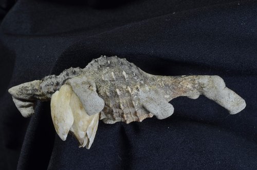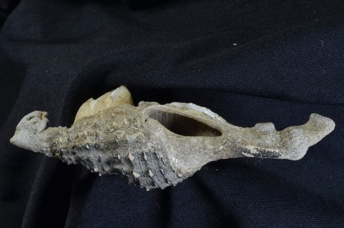 Description: 69.65x20.64mm. Inhabited by Paguristes acanthomerus 8.01x13.70mm 突腕長眼寄居蟹 and attached with Striatobalanus tenuis, taken from 東港 (Tonggong), Southern Taiwan. 2012/02