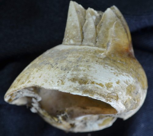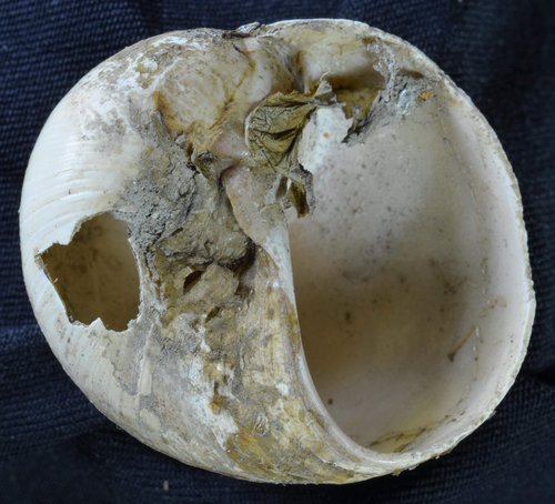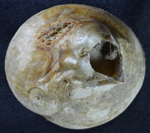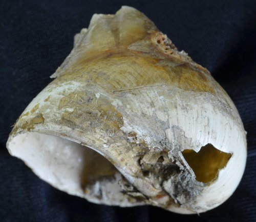 Description: 21.34x28.89mm. Inhabited by Strobopagurus sibogae, taken from 東港 (Tonggong), Southern Taiwan. 2012/02