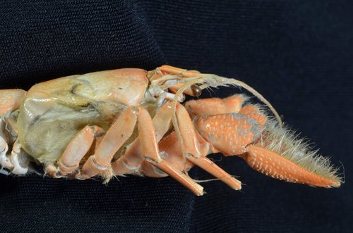Description: 47.58mm (TL), 10.22x19.62mm (Carapace), inhabit in sunken wood, taken from 東港 (Tonggong), Southern Taiwan. 2012/02