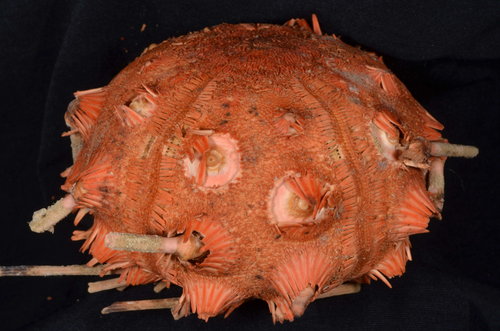 銘謝:感謝我的好友自戀兄,慷慨地提供他從世界各地辛苦收集來的海膽標本,此標本即為其一。建議對海膽有興趣的人,請多參訪他的與自然戀愛部落格,您將可看到更多海膽標本。