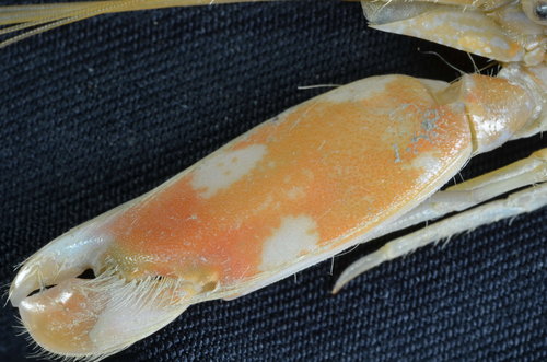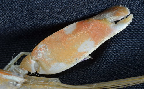 Description: 51.63mm (TL), 9.57x 16.96mm (Ca), (長指鼓蝦), taken from Donggang (東港) , Southern Taiwan. 2012/07