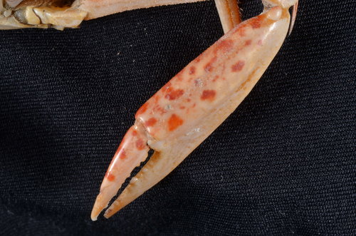 Description: 38.22x 15.69mm (Ca), attached with Octolasmis warwickii 斧板茗荷, taken from Donggang (東港) , Southern Taiwan. 2012/07